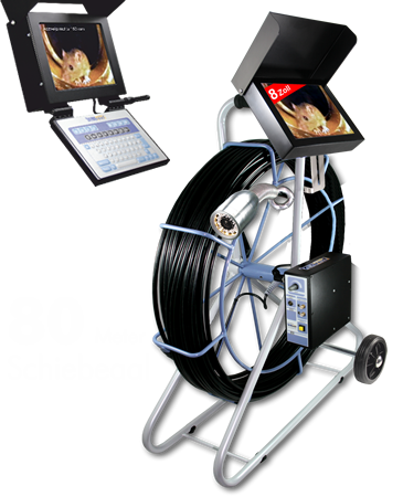 HOCHDRUCK SPÜL- ABBIEGEKAMERA 3800-SK, 8" LED-MONITOR, BIS 4 BAR WASSERDICHT, FÜR ROHRE AB NW 100 MM - 300 MM Ø, FÜR SPÜLSCHLÄUCHE 3/8" UND 1/2", 60 METER KAMERAKABEL