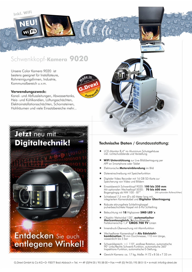 SCHWENKKOPFKAMERA 9020 MIT DIGITALTECHNIK, INKL. METEREINBLENDUNG - DATENEINSCHREIBUNG, WIFI UND AUFZEICHNUNG - 8,4" LED MONITOR