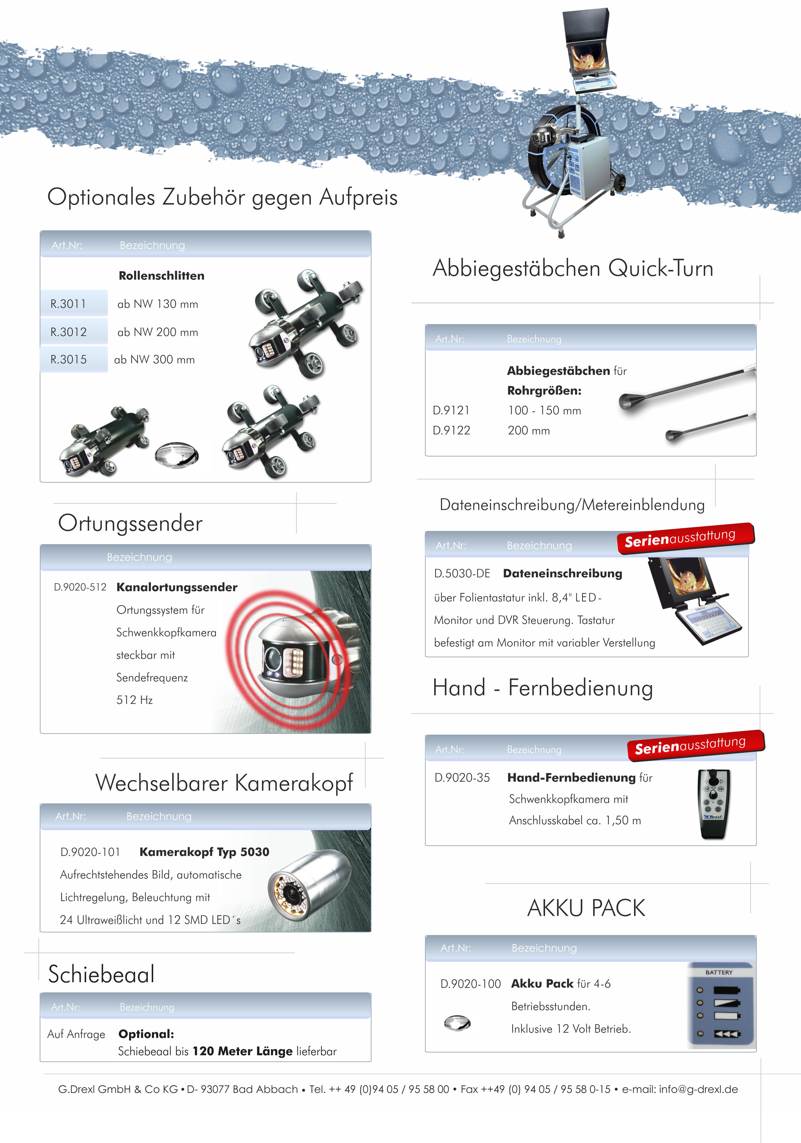 ROHRKAMERA - KANALKAMERA MINI 3000 COLOR, 5,6 " LCD-MONITOR, BIS 4 BAR WASSERDICHT, FÜR ROHRE AB NW 35 Ø, SCHIEBEAAL 4,5 MM X 30 METER. Auch mit optionalem Zubehör gegen Aufpreis erhältlich!